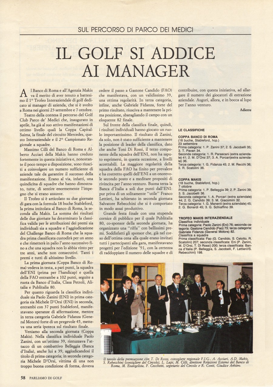Quando nel 1990 il mio amico Alberto Acciari, titolare dell'Agenzia pubblicitaria Makis, mi chiese un consiglio su come articolare un torneo di golf dedicato a golfisti