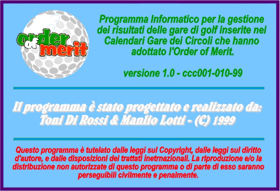 ogni socio avrebbe partecipato; più gare avesse disputato e più probabilità avrebbe avuto di aggiudicarsi, a fine anno, una bellissima targa commemorativa dell'evento. Come in altre circostanze la Golfacilities di Luciano Pandolfini colse la palla al balzo e ne fece subito una sua creatura, sponsorizzandola da subito e protraendola per tanti anni a venire. Ho motivo di credere che ancora oggi (anno 2016) questo strumento promozionale sia ancora in vita. Negli anni successivi altri circoli chiesero di poter utilizzare lo strumento informatico col quale avevo dotato la classifica in sé, e per molti anni l'Order of Merit fu oggetto di sponsorizzazioni diverse nei vari circoli del Lazio. Per avere una idea precisa di che cosa fosse effettivamente l'Order of Merit, sarebbe il caso di leggere l'apposita pagina che lo descrive in dettaglio: " Presentazione dell'Order of Merit". |