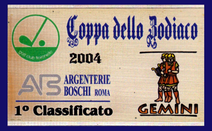 suo genere. Nel 2004, in occasione del decennale di questa gara, la ditta Boschi, che ormai sponsorizzava la gara di Fioranello, volle dedicarle una targa un po' diversa dal solito, come quella che vinsi io come rappresentante della categoria "Gemelli". |