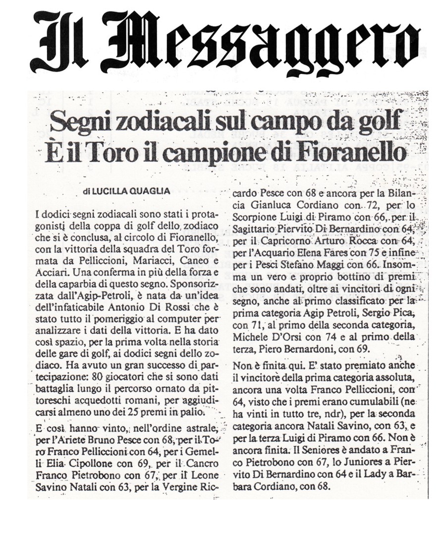 circolo di golf, Fioranello. Gli risposi che si sarebbe potuta organizzare una gara intitolata al nome della testata e gli riassunsi, in breve, quale sarebbe potuto essere il regolamento. |