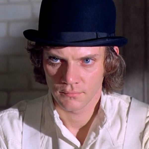 "Arancia meccanica" di Stanley Kubrick, con l'inquietante Malcom McDowell nei panni di Alex deLarge.