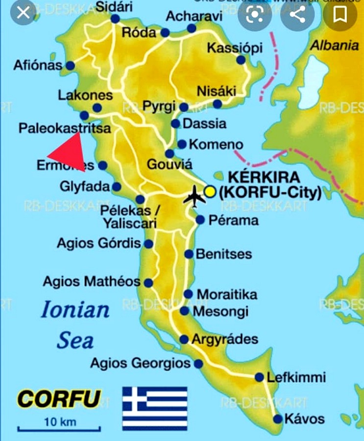 La città di Paleokastritsa, Παλαιοκαστρίτσα in greco, nome che richiama il piccolo e antico castello, riferito al vicino Angelokastro si trova lungo la costa occidentale dell’isola a 25 chilometri