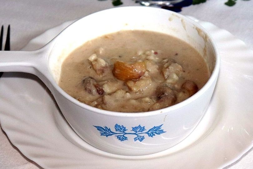 La minestra di castagne è tipica della zona di Arnad e viene preparato con l’utilizzo di castagne secche, latte, acqua, sale e burro; il tutto cotto a fuoco lento per parecchie ore. Si ottiene