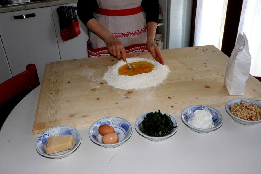 messo del suo! Si calcoli che in Liguria i pansoti si fanno tutto l'anno; quello che cambia sono le erbe e/o le verdure che compongono il ripieno e ciò dipende dalla stagionalità. Questo impasto di erbe sempre diverse viene chiamato