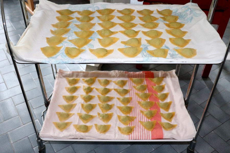 .. Chiudete la pasta a fagottino e sigillate i lembi con una lieve pressione delle dita, poi lasciate asciugare e nel frattempo preparate la salsa sgusciando le noci e liberando i gherigli dalla pellicola