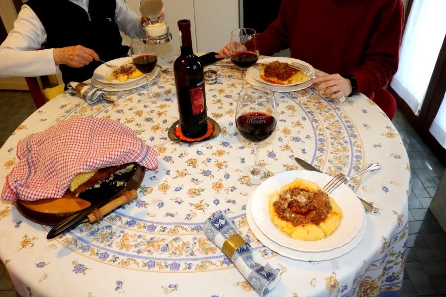 Quando invece si stava un po' meglio, ecco che alla polenta si univano tante altre cose. I più abbienti ci mettevano le salsicce piuttosto che un ottimo spezzatino se non addirittura della caccia.