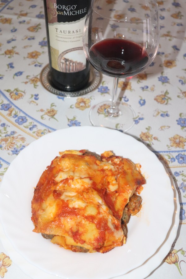 cosa più importante oggi non era, per quanto buona, la lasagna di Urania ma il famoso Taurasi, detto anche il Barolo del Sud.