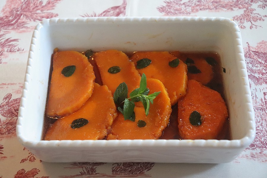 Dolce: Quadrotti di Zucca Violina con Amaretti e Uva Sultanina;