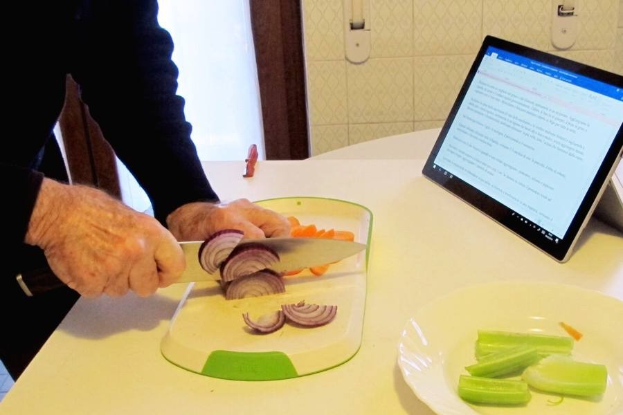 - Nel frattempo tritate lo scalogno, il sedano, la carota e il rosmarino.