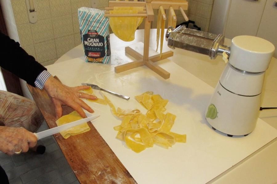 Una curiosità: il tritacarne che adopero nella foto n. 1 è quello che usava mia madre fin da quando ero bambino. La tavola di legno della foto n. 4 sulla quale Fausta taglia le pappardelle è la stessa tavola che la sua mamma adoperava