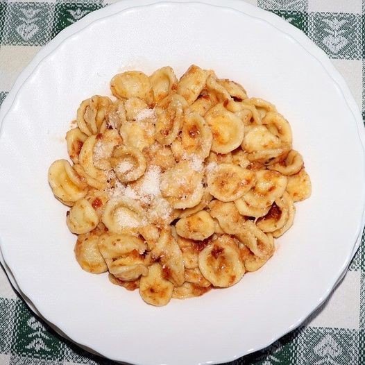 - Scolate le orecchiette e buttatele nel tegame, rigirando per bene e mantecando con la metà del cacioricotta.
