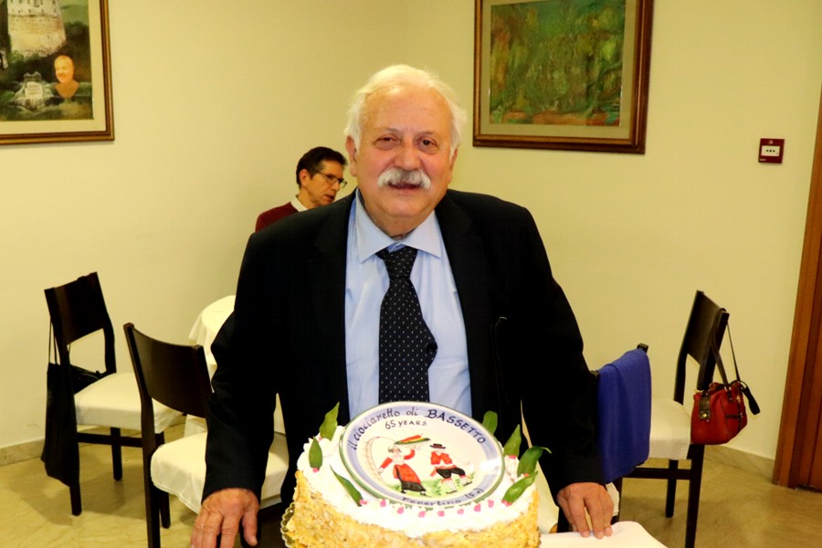 Luigi Concutelli, proprietario, insieme ai fratelli, dell'Hotel Ristorante Bassetto, ritratto il giorno del convivio del Buon Ricordo.