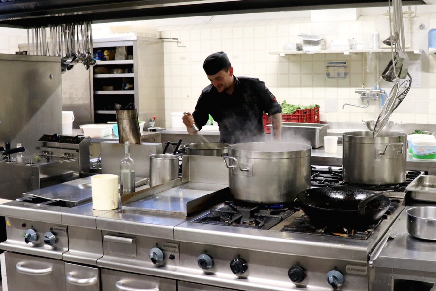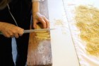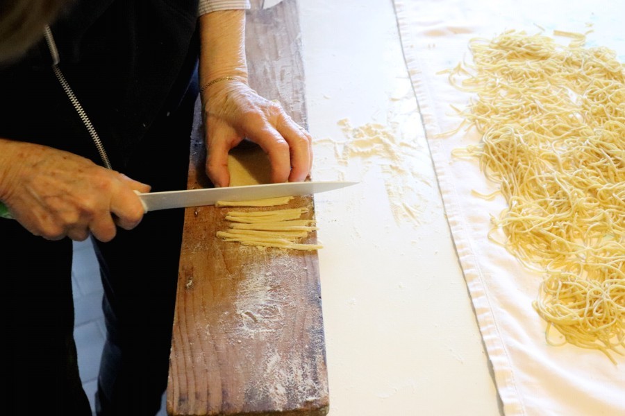 Fausta mentre taglia a mano i Fini Fini, ancora più sottili dei tagliolini.