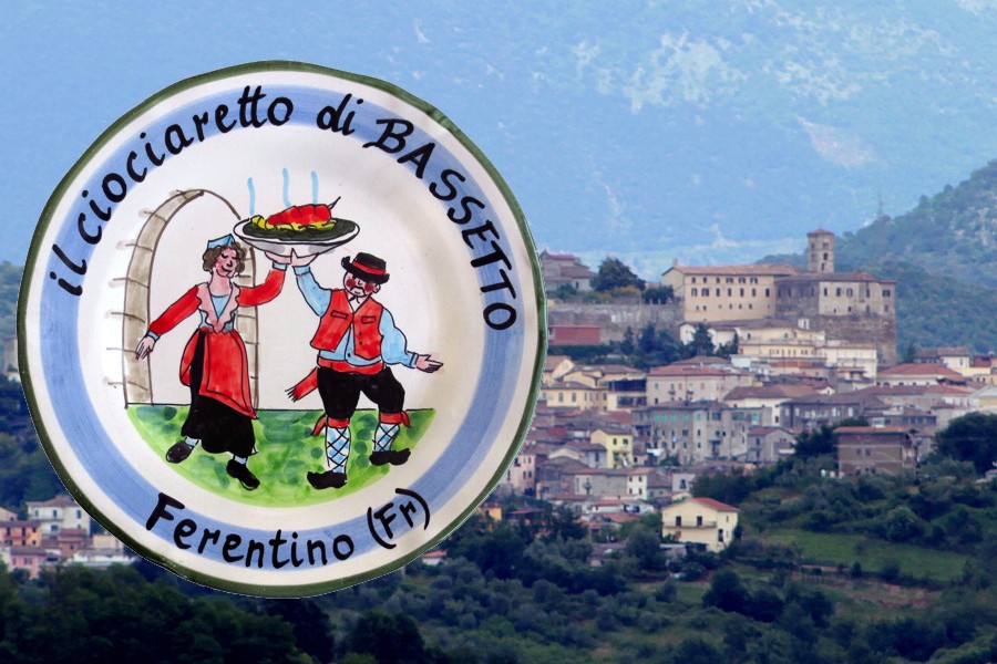 Il piatto del Buon Ricordo sullo sfondo del paese di Ferentino.