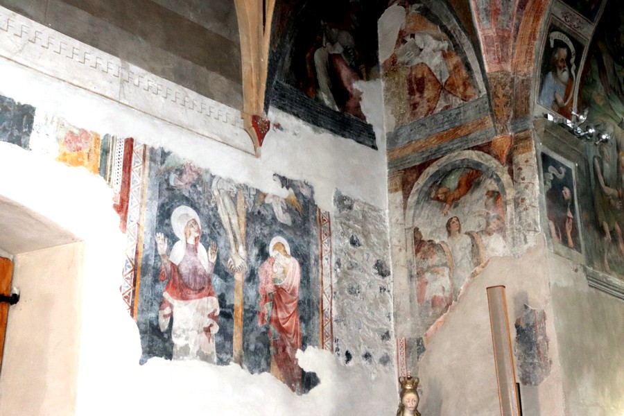 Anche internamente la struttura si presenta molto semplice con una sola navata e il presbiterio a pianta quadrata.
