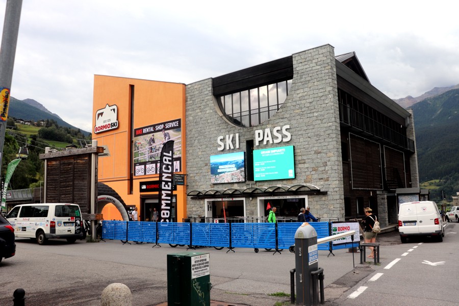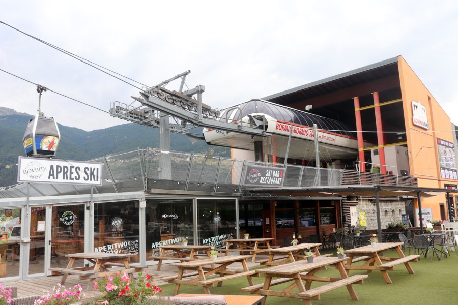 Questa è la costruzione che ospita la stazione della funivia che porta a Bormio 2000 e, successivamente, a Bormio 3000.
