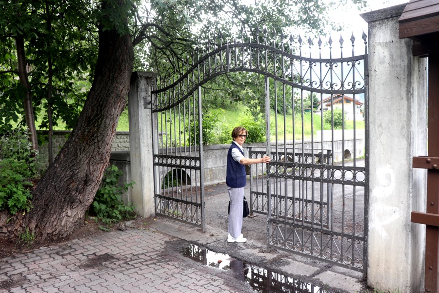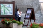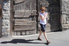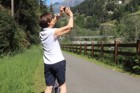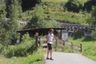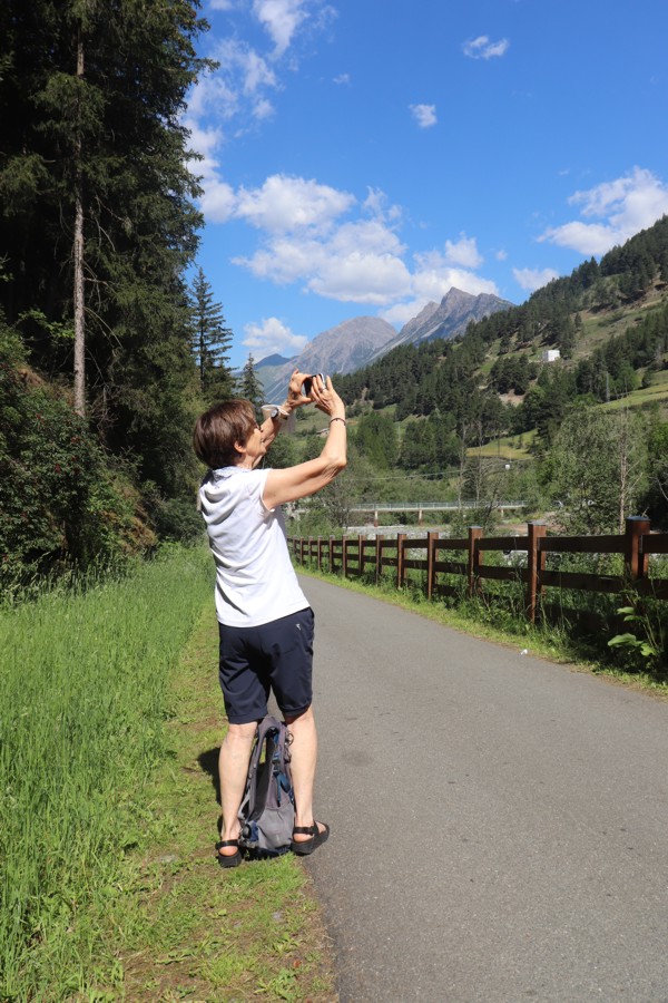 La mia fotografa personale all'opera mentre fotografa il panorama di Bormio dietro il ponte di Combo e mentre fotografa...