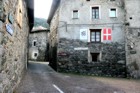 Un bivio all'interno del paese. Sulla sfondo la chies di Santa Lucia.