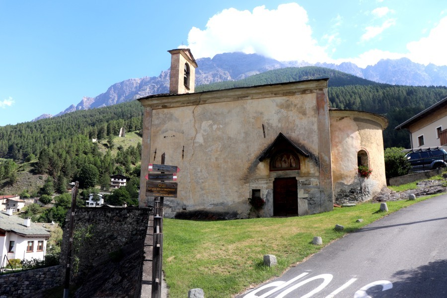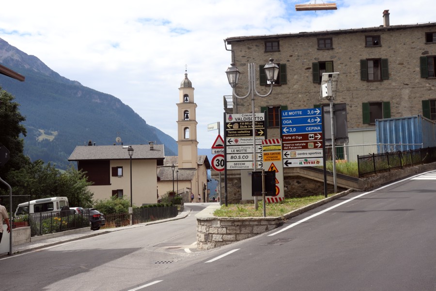 Siamo sulla provinciale e a sinistra inizia la zona di Valdisotto. Il primo centro abitato che si incontra è quello di santa Lucia.