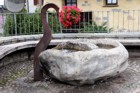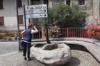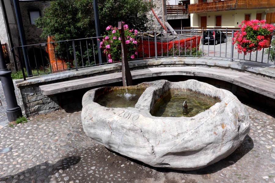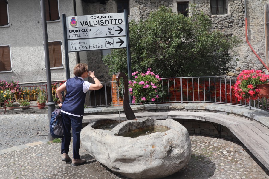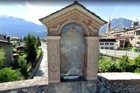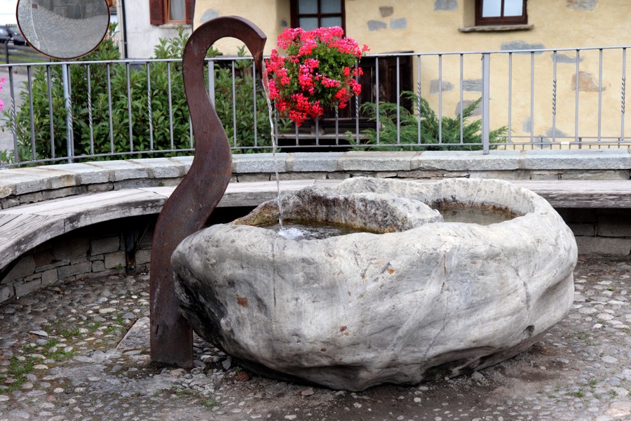Santa Lucia. Una bella e moderna fontana corredata di una cascata di fiori, come si conviene alle abitudini della valtellina.