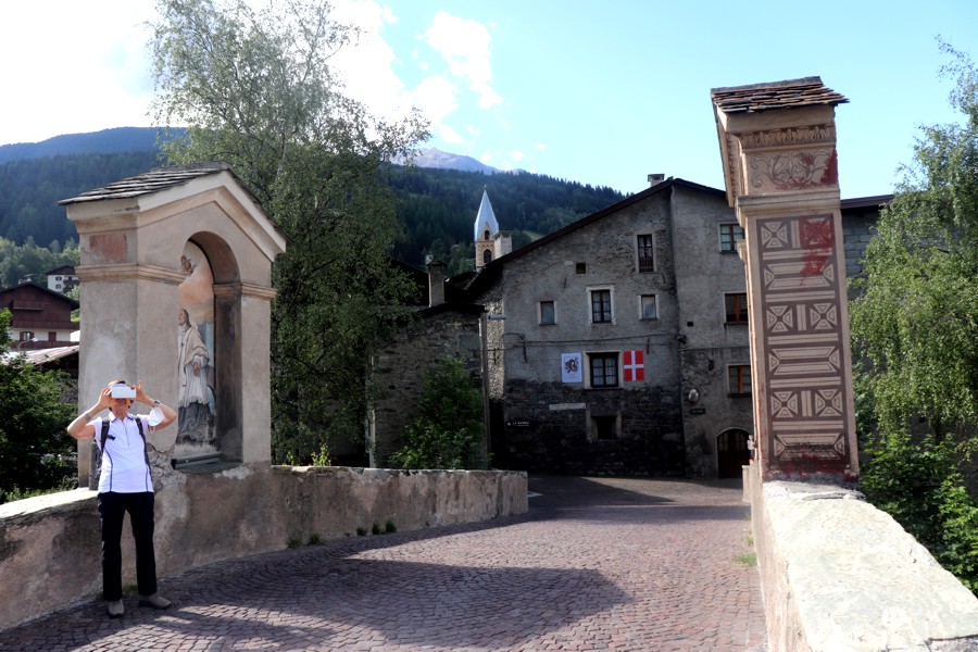 Davanti a noi il Ponte di Combo che è uno straordinario esempio di architettura storica locale, offre uno scorcio sulla Valfurva, con un panorama molto suggestivo. A metà