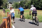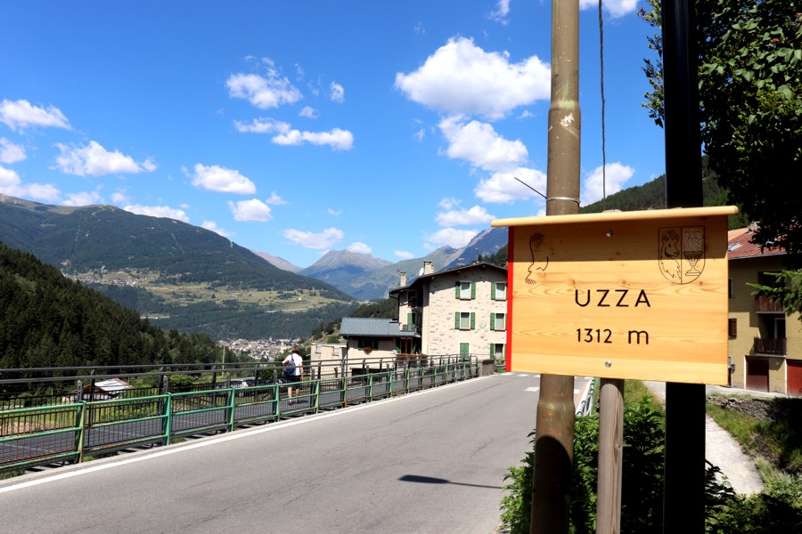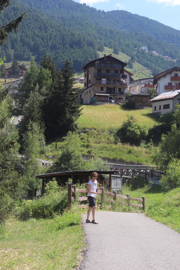 Siamo quasi arrivati al viadotto che divide il territorio di Bormio da quello di Valdisotto dove c'è l'abitato di Santa Lucia. Sulla sfondo svetta il campanile della chiesa, appunto