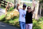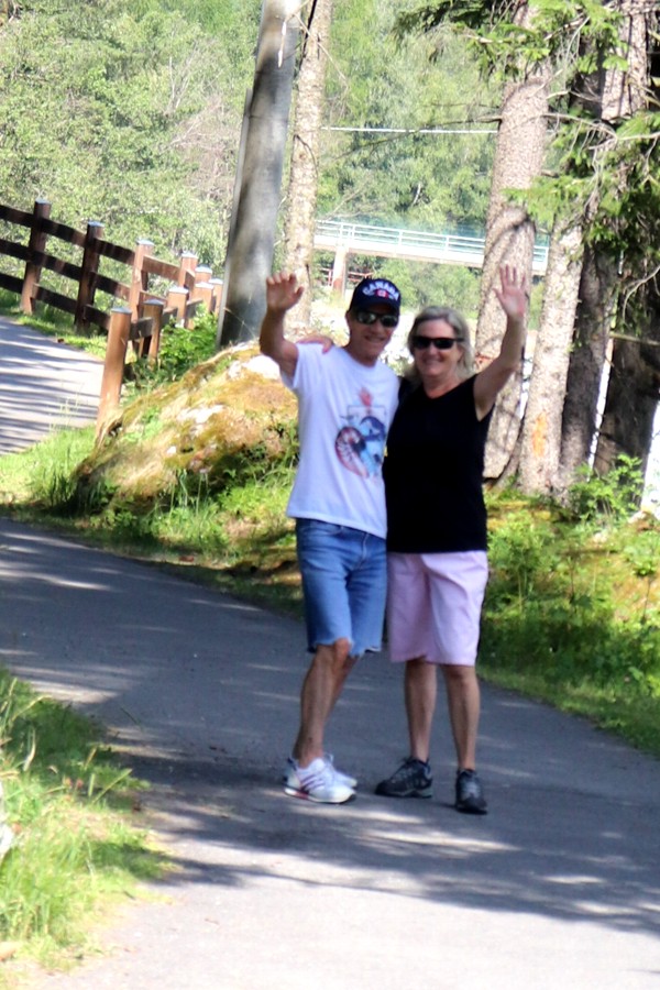 Questi sono Anna e Carlo, due persone conosciute lungo il tragitto con le quali ci siamo fermati a fare due chiacchiere e subito abbiamo simpatizzato. Qui ci salutano dopo esserci