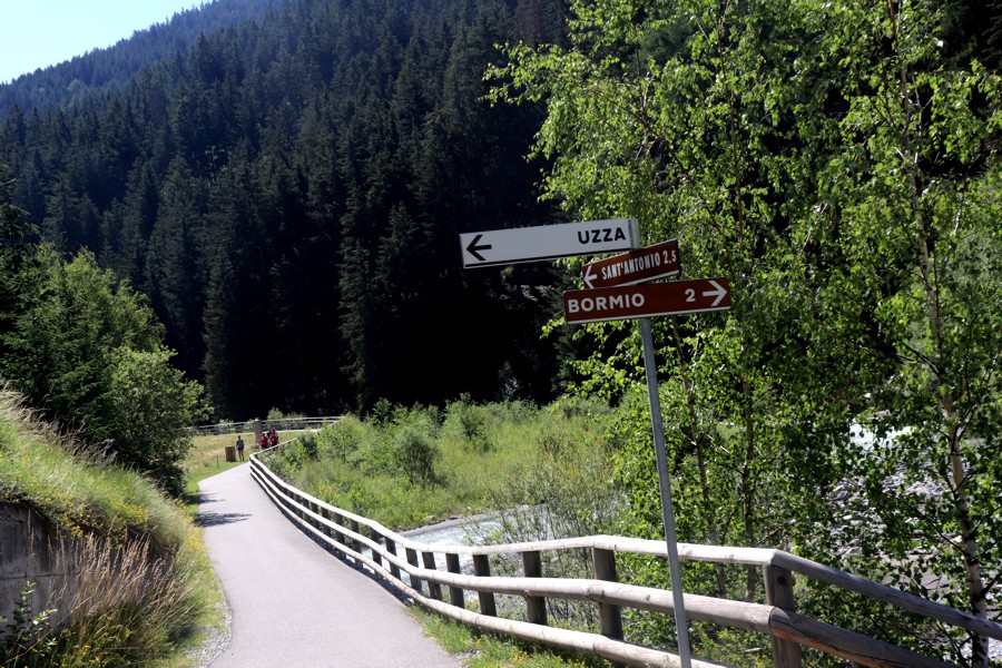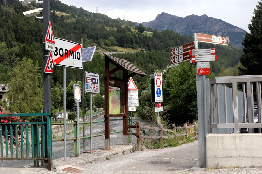 Qui finisce la giurisdizione di Bormio. Andando a destra ci sono dei sentieri che costeggiano Bormio.
