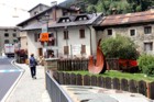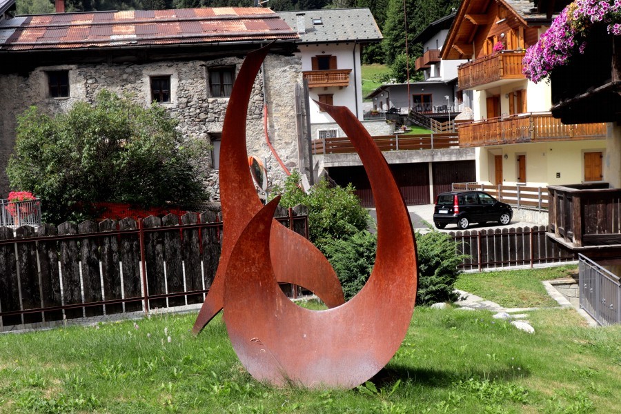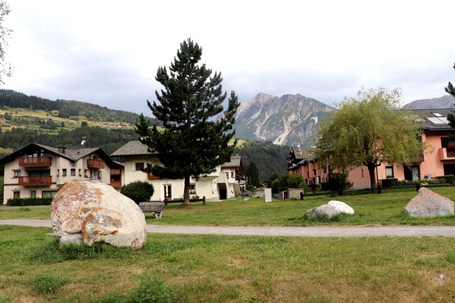 Alla confluenza di 4 strade c'è uno slargo senza nome al centro del quale c'è una bella statua in legno che rappresenta uno sciatore, emblematico per la città di Bormio.