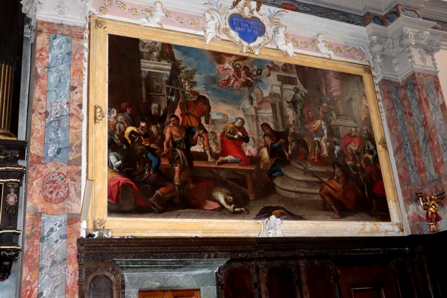 Il luminoso altare maggiore è invece impreziosito da due pale dipinte nel 1721 da Giuseppe Prina e raffiguranti il Martirio dei Santi Gervasio e Protasio e Il trasporto delle loro reliquie.