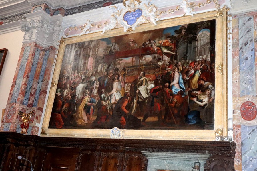 Di particolare pregio è anche la tela che domina il coro e intitolata il Trionfo della Musica Liturgica. Dipinta tra il 1666 e il 1678 è opera degli artisti Carlo Marni, Paolo Colberg e
