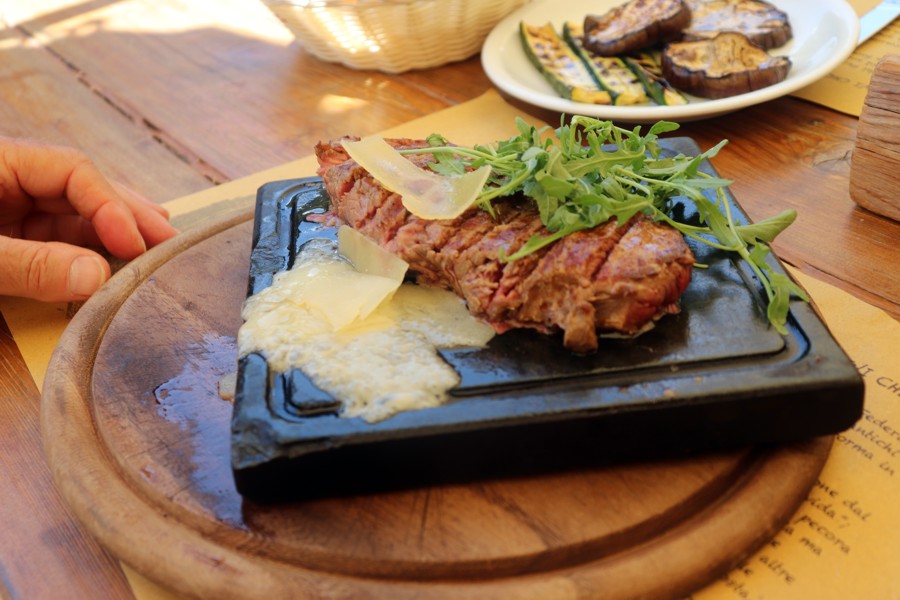 Carlo e Anna, da bravi "carnivori" mangiano una tagliata di manzo.
