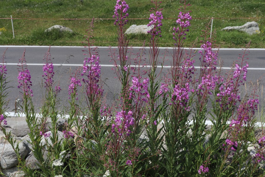 Una siepe di Epilobium Angustifolium ovvero Sanandrea divide la strada dall'area di parcheggio nella quale ci troviamo.