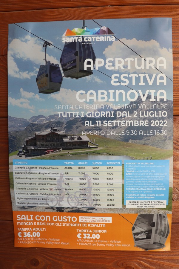 Il manifesto con gli orari della cabinovia per il periodo estivo.