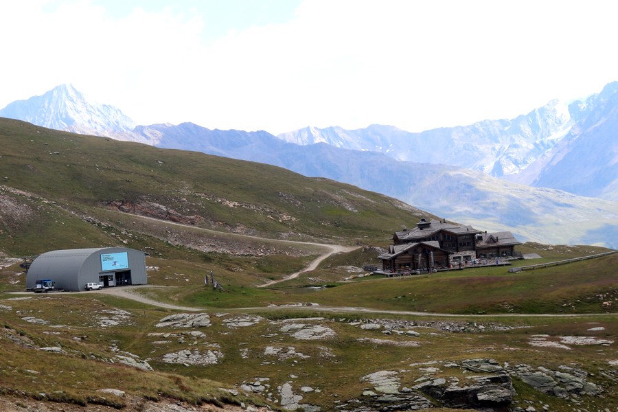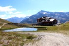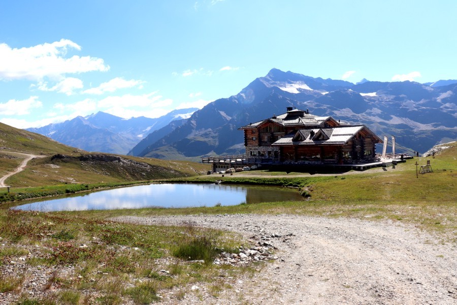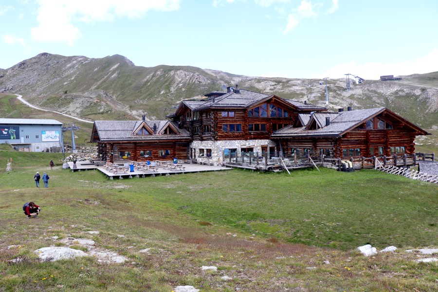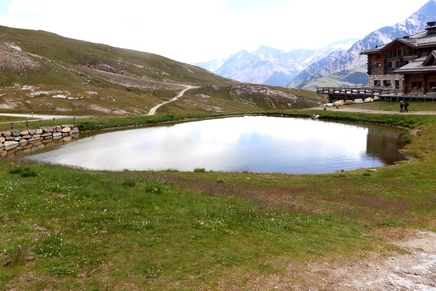 Il rifugio/ristorante/albergo Sunny Valley con, davanti, il laghetto artificiale.
