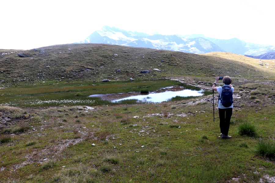Fausta fotografa il laghetto dalla parte opposta e da qui si vede un po' d'acqua, ma è davvero poca.