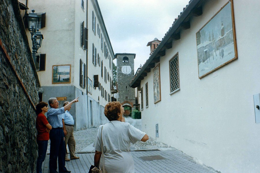 Foto 7/15 - Prosegue il cammino lungo Via Balbo ammirando le opere dei pittori russi. Sullo sfondo sempre la Torre del Ricetto al