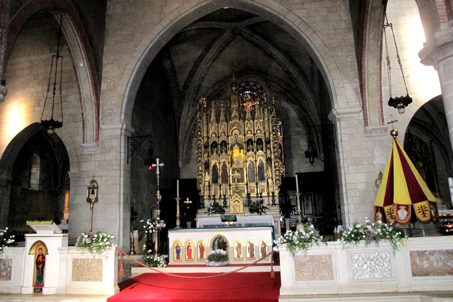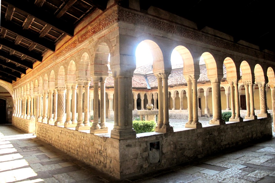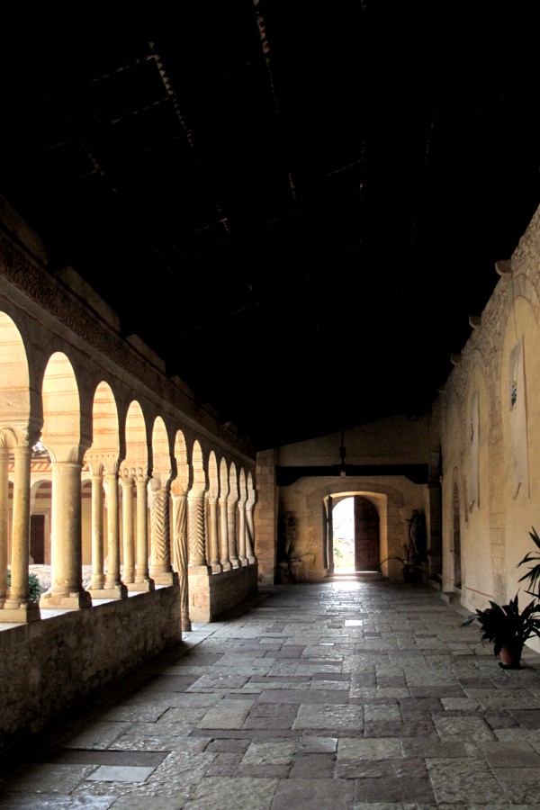 Lo splendido chiostro, di età precedente alla basilica e perfettamente conservato nell’elegante effetto di movimento creato dalle colonne che lo costituiscono, fu portato a termine nel