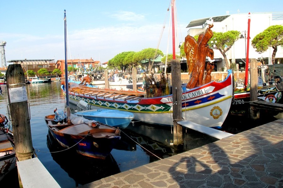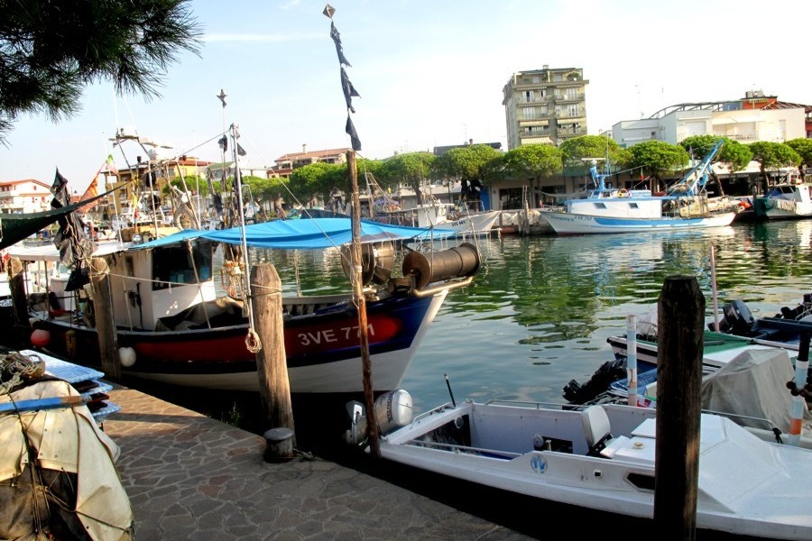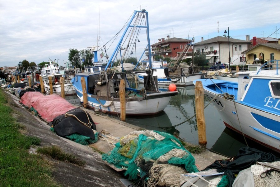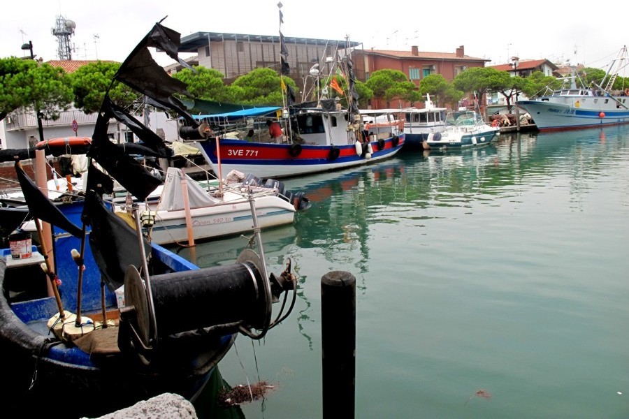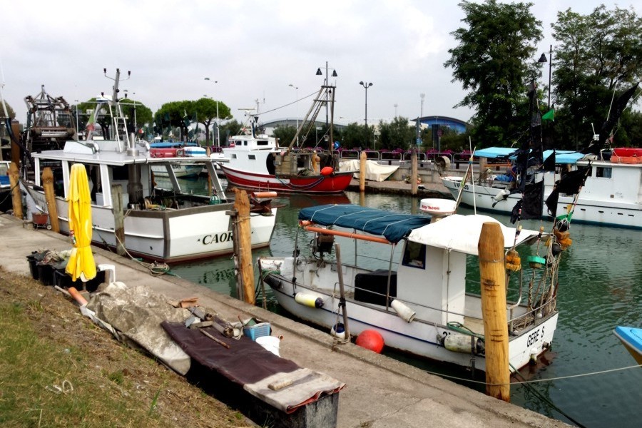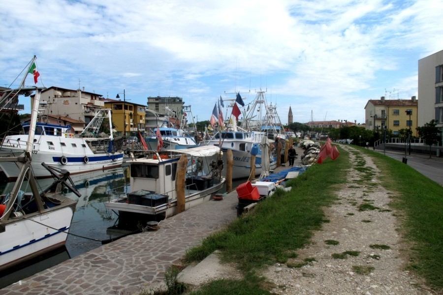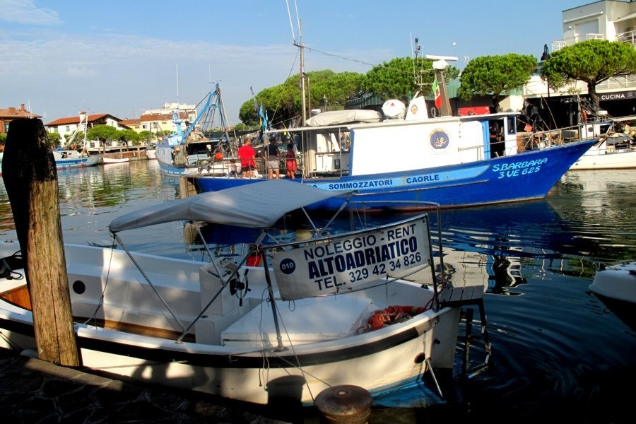 Il porto peschereccio di Caorle ha la particolare caratteristica di entrare fino al cuore della città a ridosso del centro storico. Qui si possono ammirare i pescherecci che