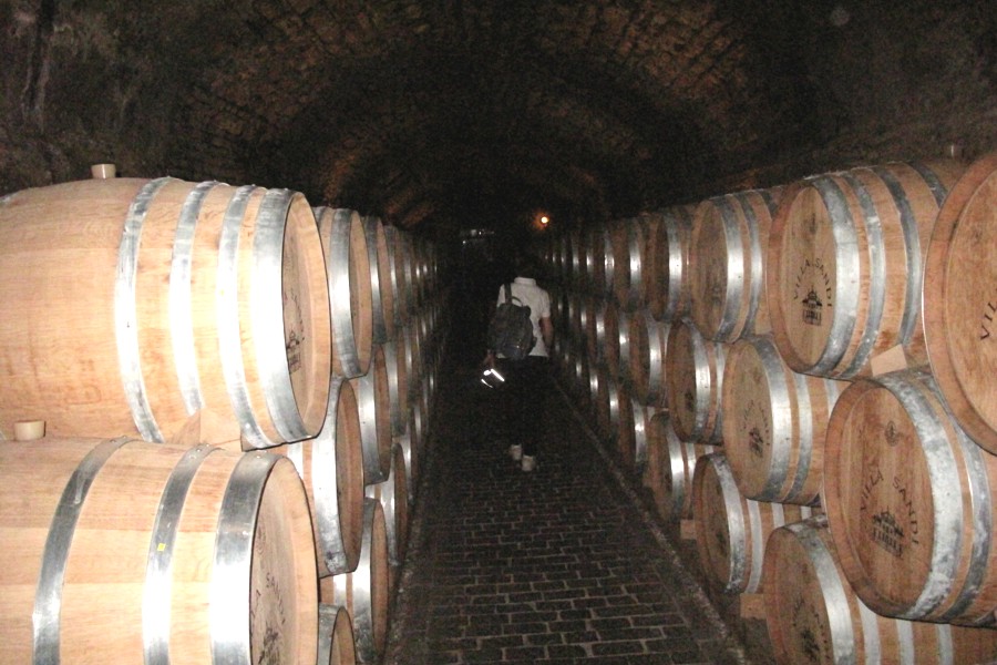 Foto 30/63 - Le cantine di Villa Sandi. Elizabeth ci racconta la storia delle cantine e dei vini che vi sono conservati.