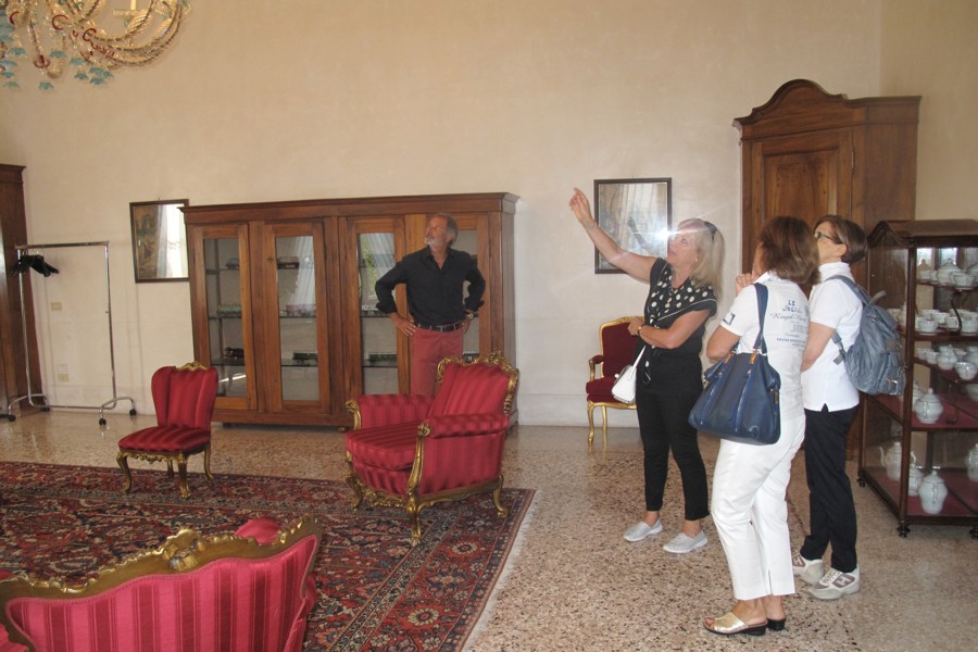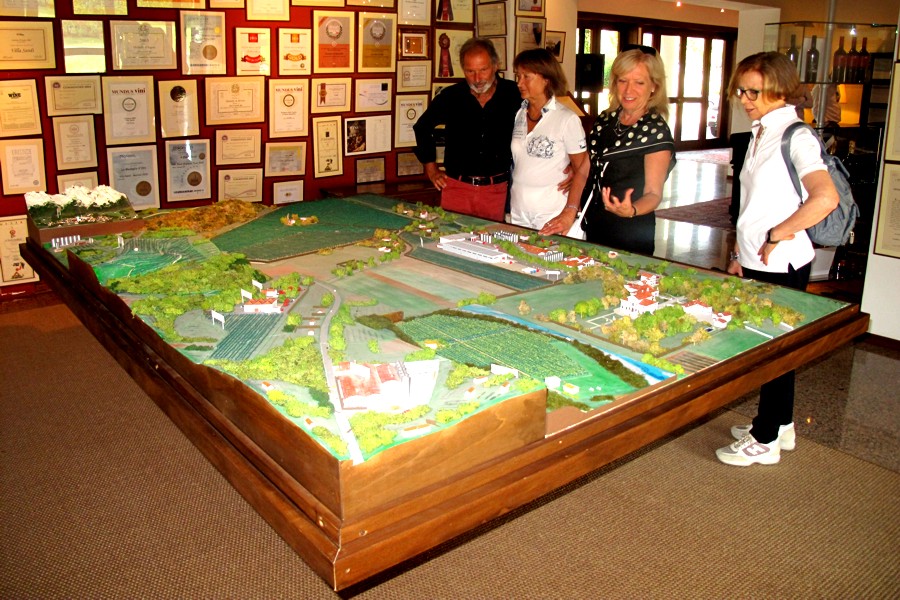 Foto 21/63 - Le cantine di Villa Sandi. Siamo tornati al piano della direzione e Elizabeth ci illustra la planimetria della proprietà