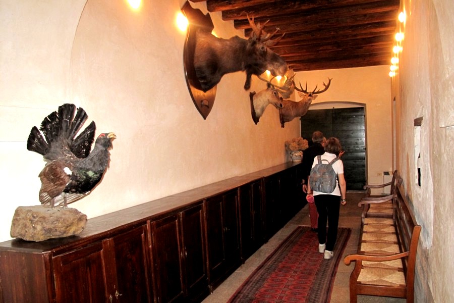 Foto 40/63 - Villa Sandi. Un lungo corridoio con trofei di caccia.