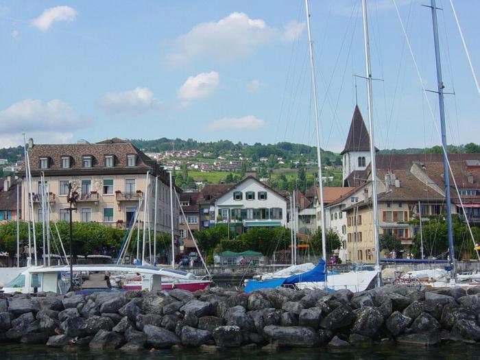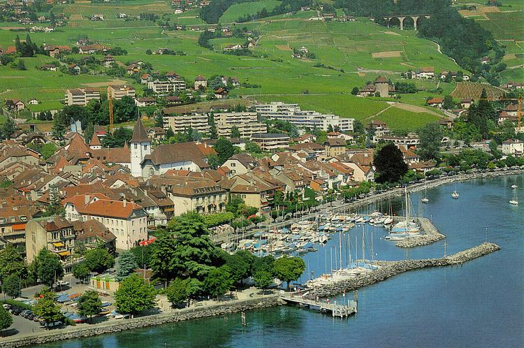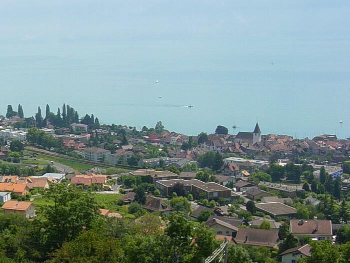 occupa un territorio che va dal Lemano al Jorat: il borgo si trova in riva al lago, a 373 metri