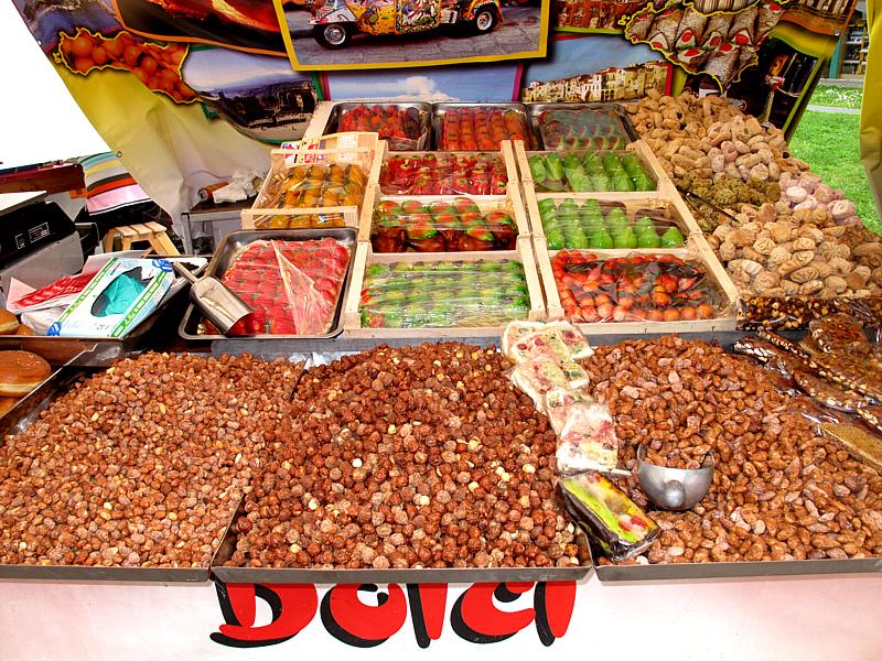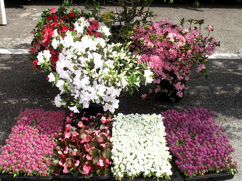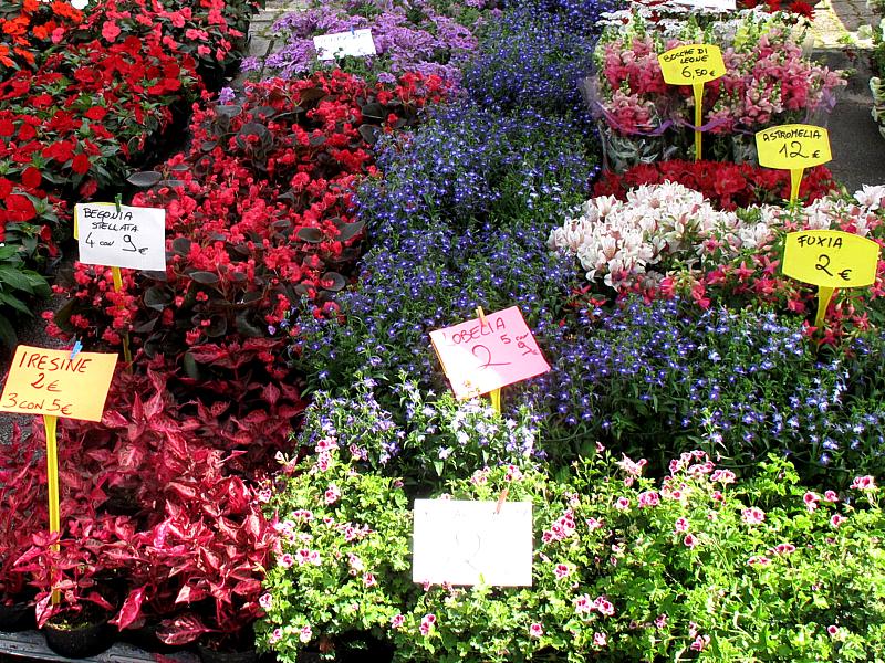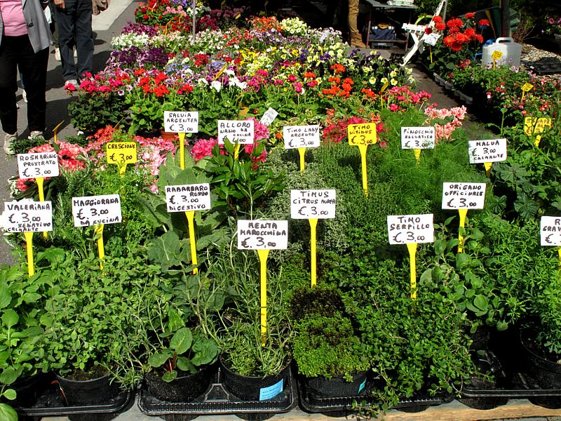 di fiori e piante, bancarelle di artigianato e