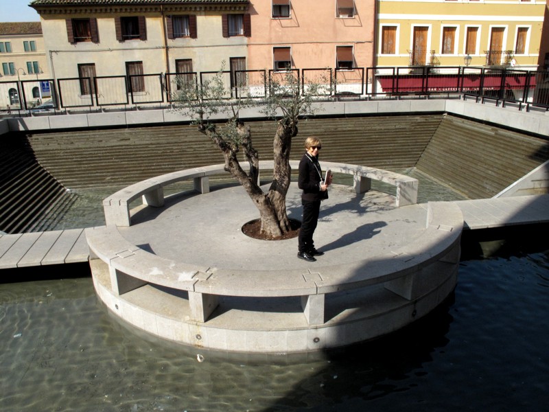 da una grande vasca colma d'acqua, al centro della quale si trova uno