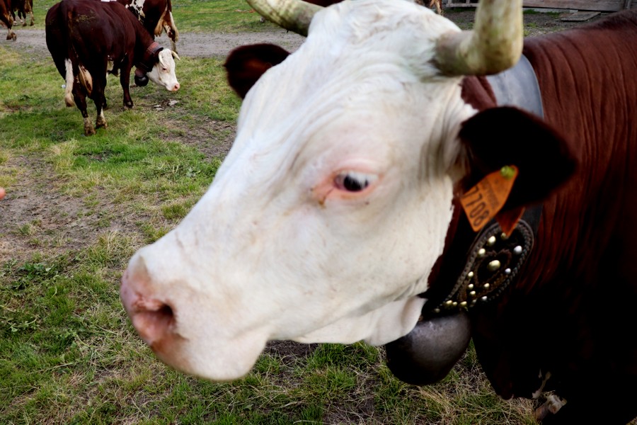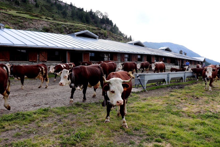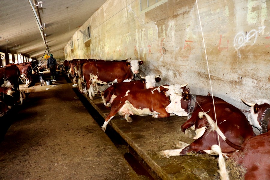 Siamo nella stalla, un ambiente che può ospitare fino a 100 vacche. In questo caso quelle che sto fotografando sono di razza "Pezzata Rossa".