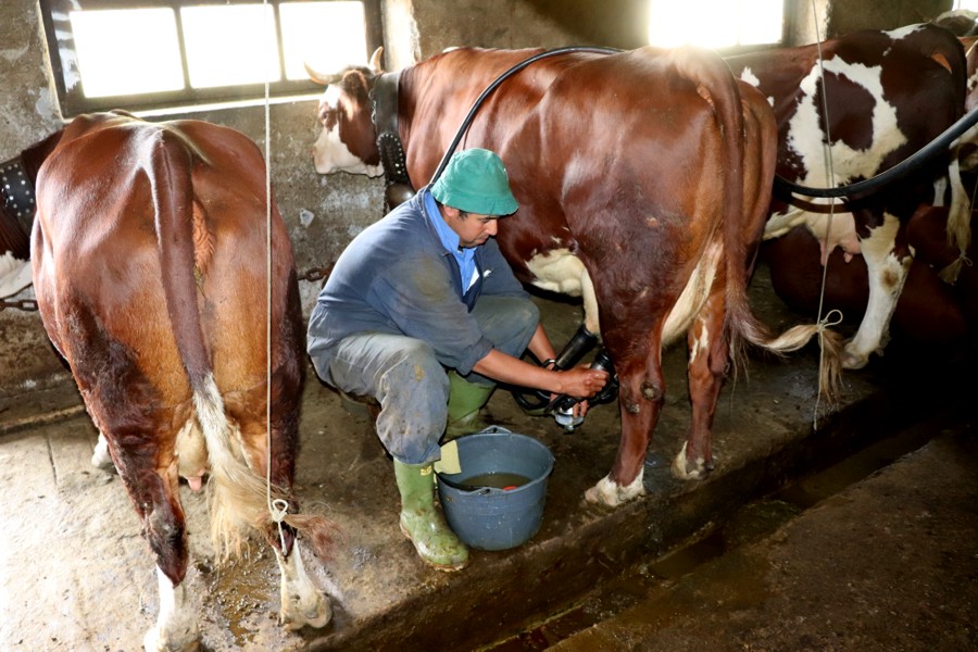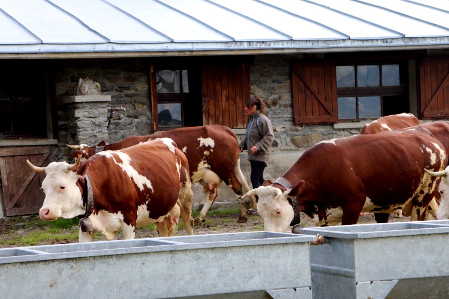 Alla comitiva si sono aggiunti anche Titti e Bella. E' un momento di relativo relax prima di avviare le operazioni che dovranno consentire la realizzazione di 4 forme di fontina.