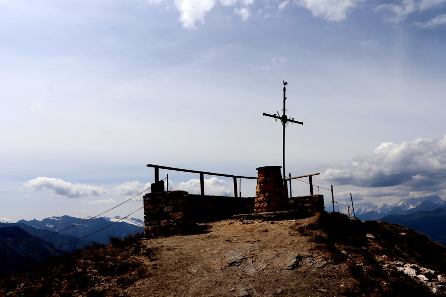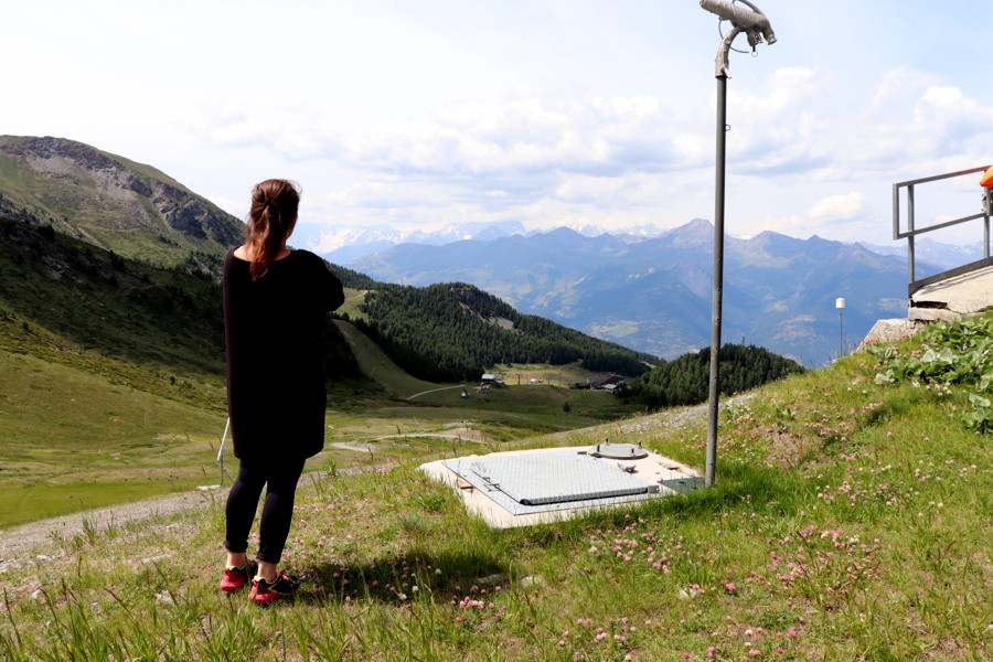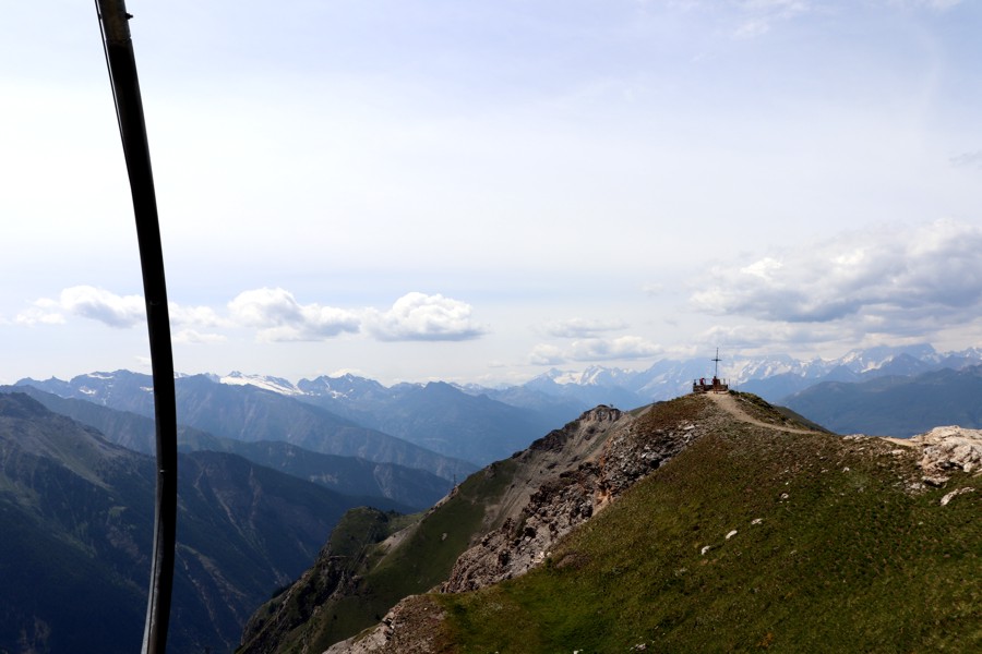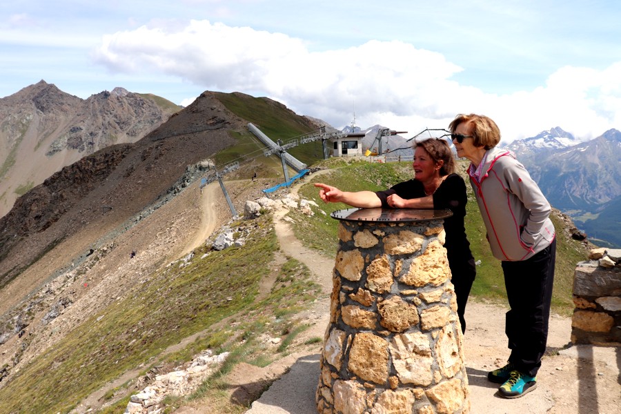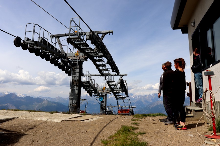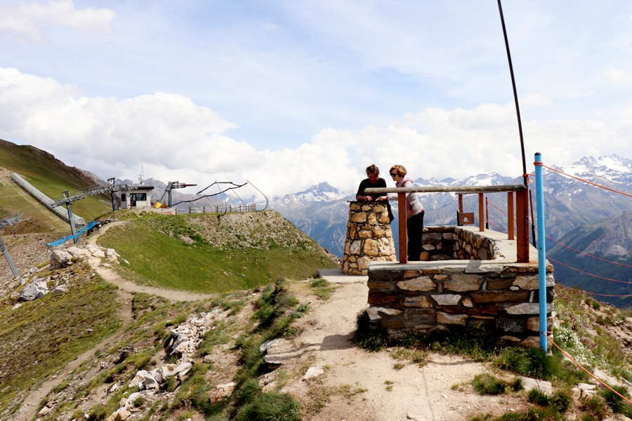 Ci siamo fermati alla stazione di arrivo della seggiovia Leissé perché Titti vuol farci vedere il panorama.