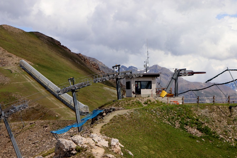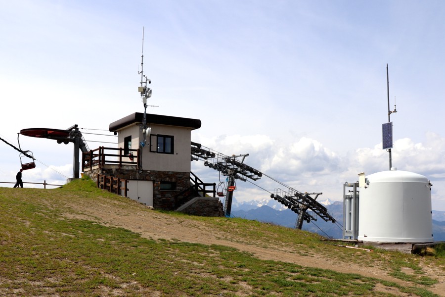 Da qui vediamo la cabina di comando della seggiovia in pieno collaudo.
