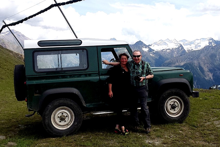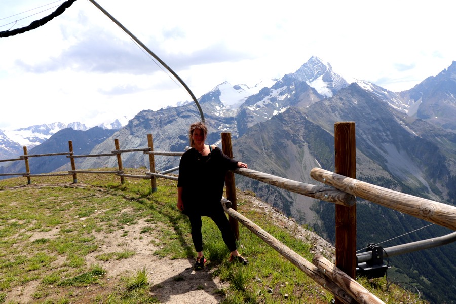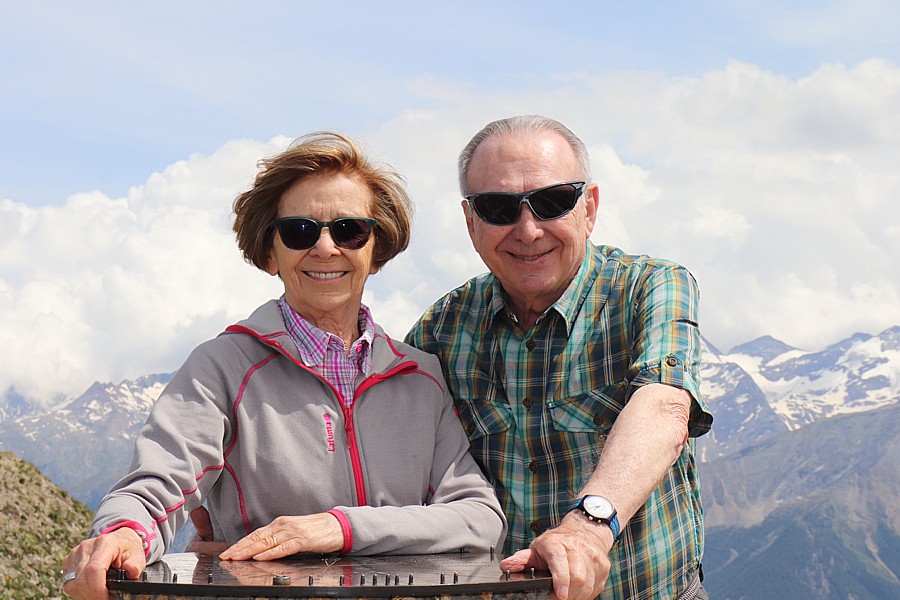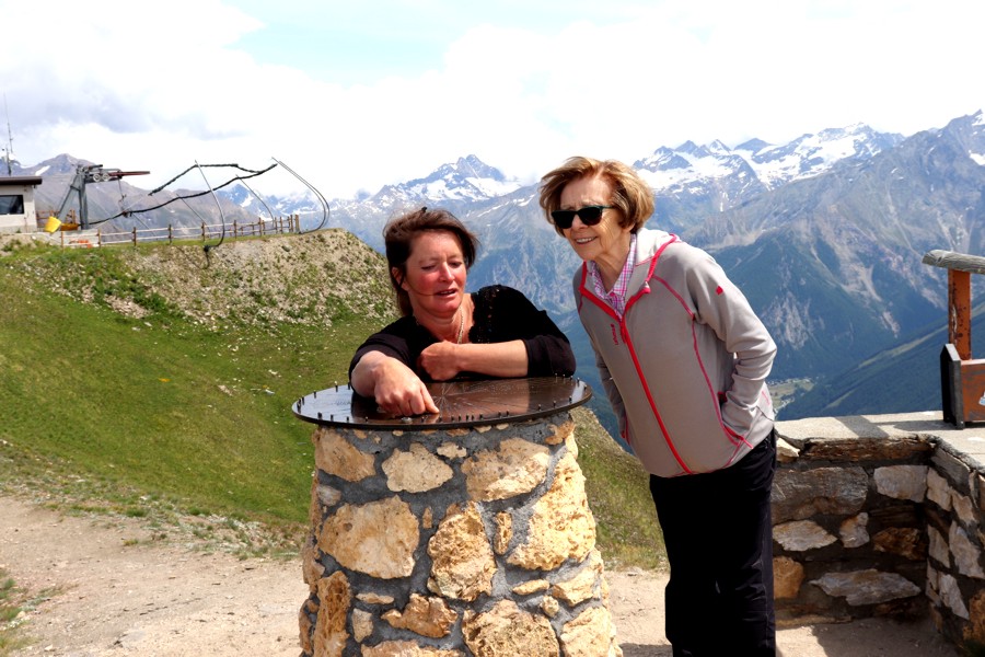 Noi due, sul punto d'osservazione con la catena del Gran Paradiso alle spalle.
